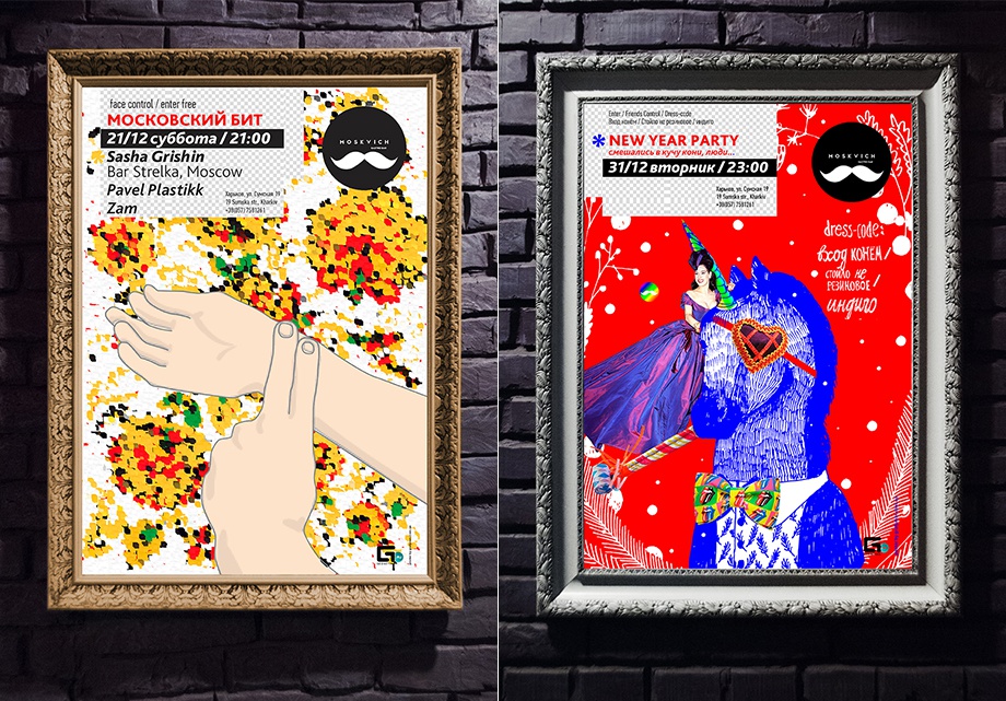 Posters made for Moskvich bar